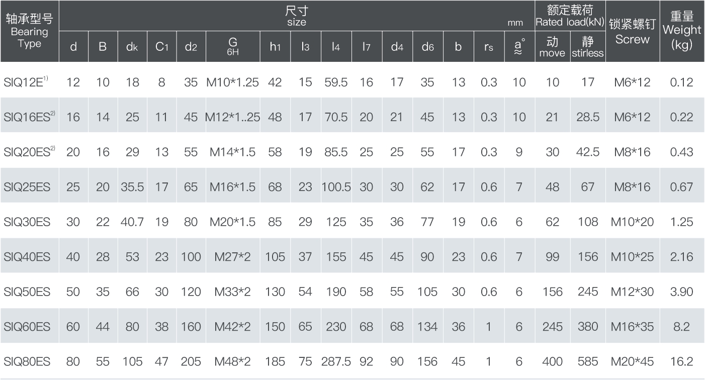 若是左旋螺紋,軸承型號和螺紋標(biāo)記需加“L”和“左”,例如:SILQ40ES M27×2L-6H.